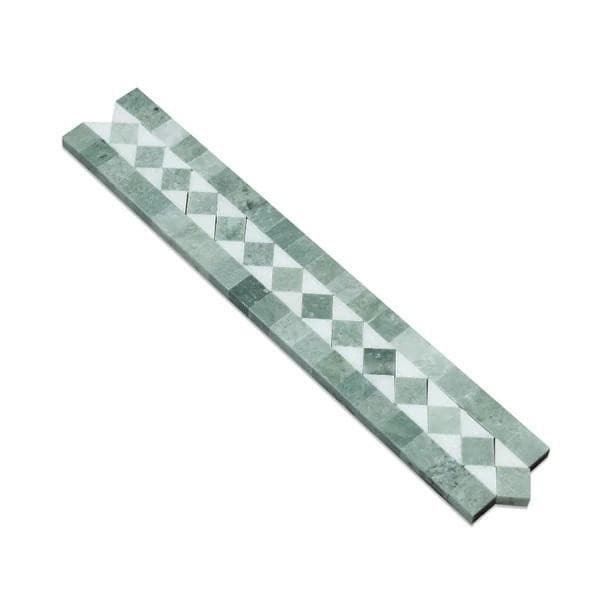 2 x 12 Polished Thassos White Marble BIAS Border w/ Ming Green Dots