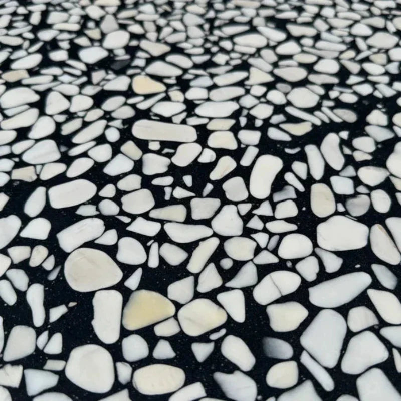 Create a luxurious and sophisticated ambiance in any room with the Arctic Black 24x24 Polished Terrazzo Tile. Elevate your interior design with its sleek and polished look while enjoying its high-quality and durable composition. Perfect for adding a touch of elegance to your home.