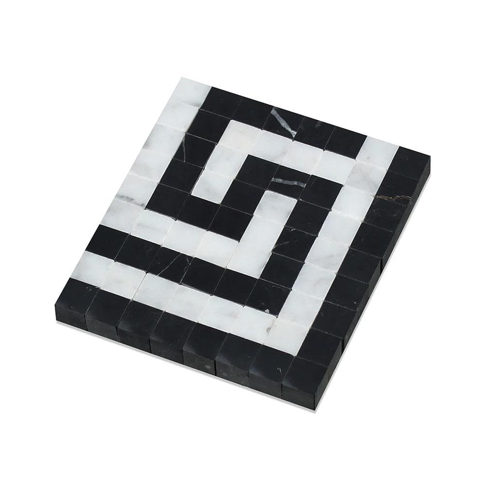 Bianco Carrara Polished Marble Greek Key Corner (Carrara w/ Black)