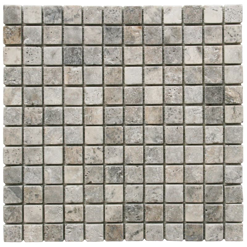 Silver Travertine 1x1 Tumbled Mosaic Tile