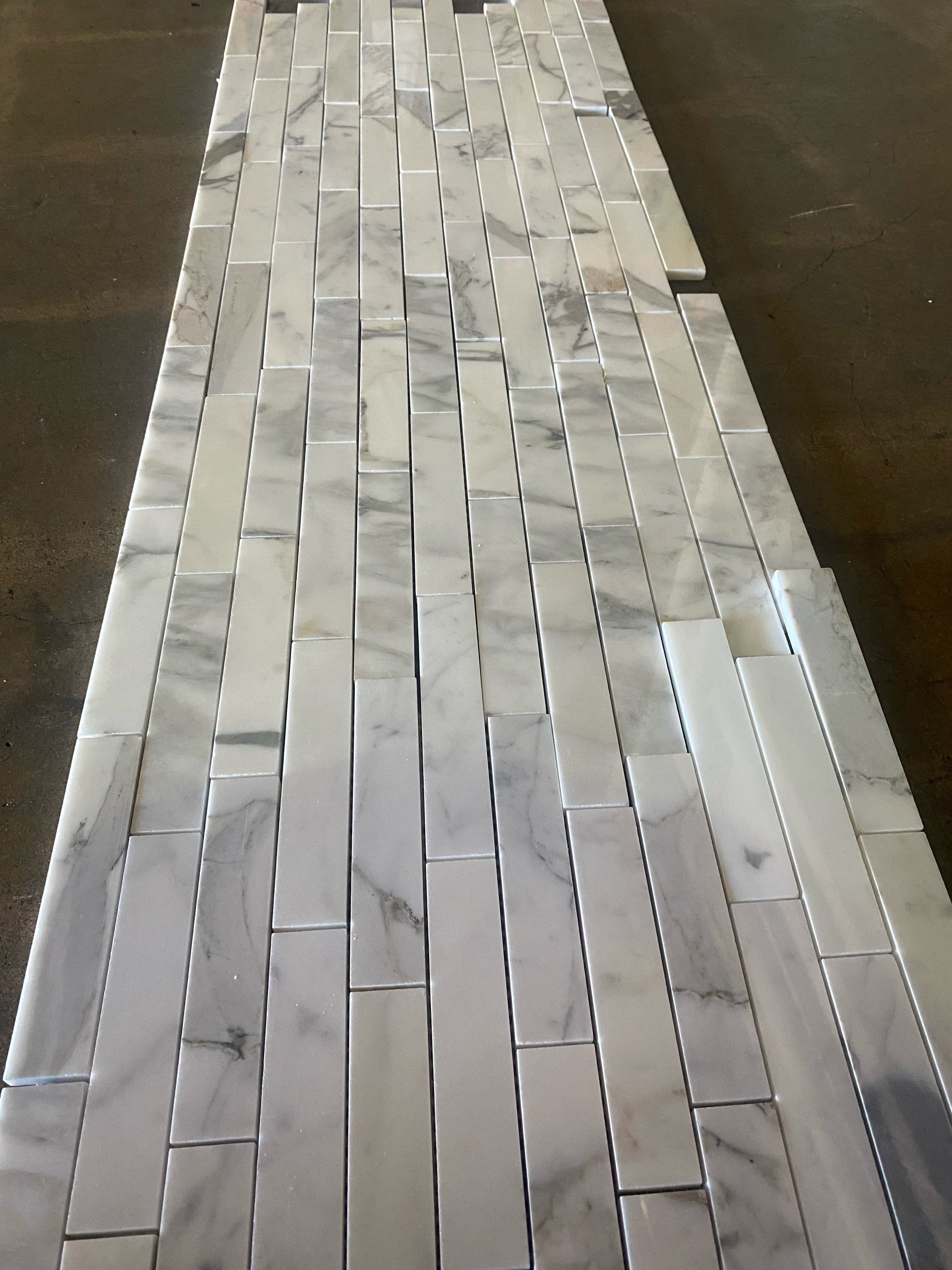 CLEARANCE SALE: Calacatta Gold 1x6 Staggered Mosaic Tile